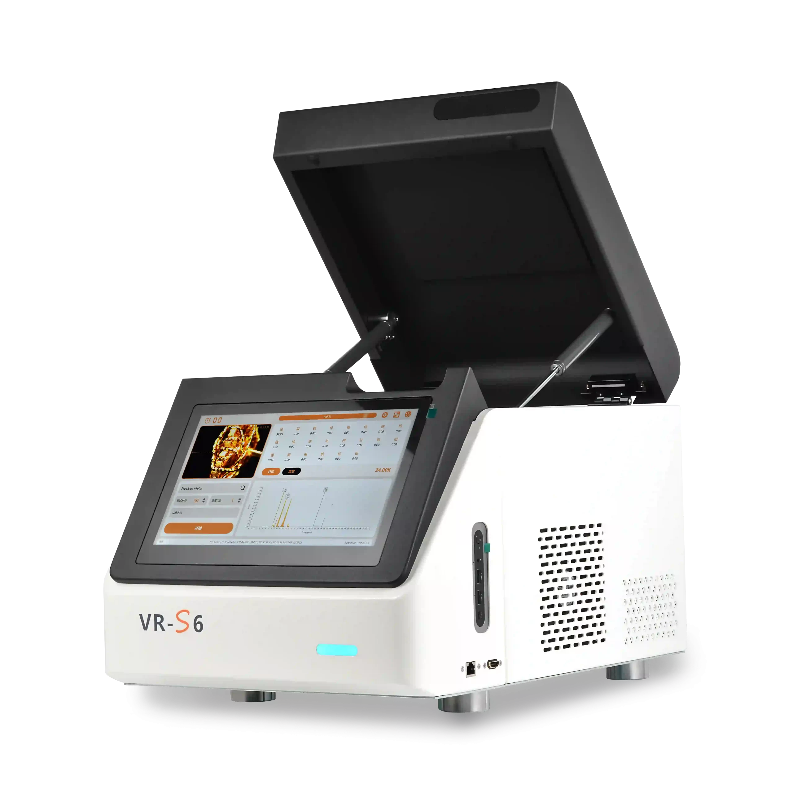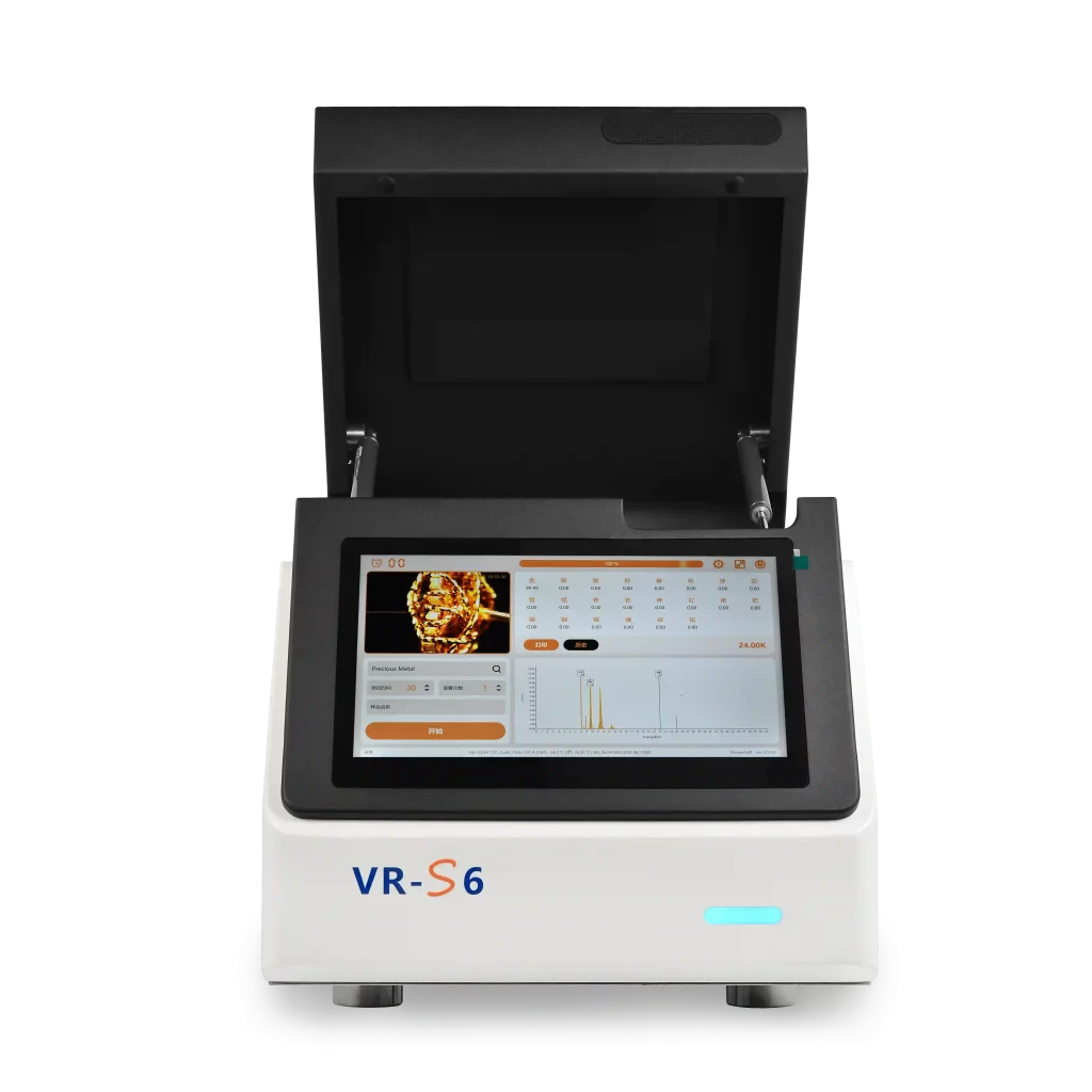 Engineered for laboratories, jewelry ateliers, and production floors where every inch of bench space matters, the VR‑S6 delivers uncompromising accuracy across. Its ultra‑high‑resolution Si‑PIN detector and state‑of‑the‑art Multi‑FP processing algorithm ensure crisp peak separation, rapid measurement cycles, and lower detection limits, making it ideal for both routine screening and advanced research applications. Housed in a striking, matte‑black and white enclosure with sleek, rounded edges, the VR‑S6 is up to 30% smaller than conventional benchtop models, Comprehensive safety feature guarantee peace of mind for operators, while the compact form factor and elegant aesthetics make the VR‑S6 as much a statement piece on your bench as it is a workhorse for elemental analysis.